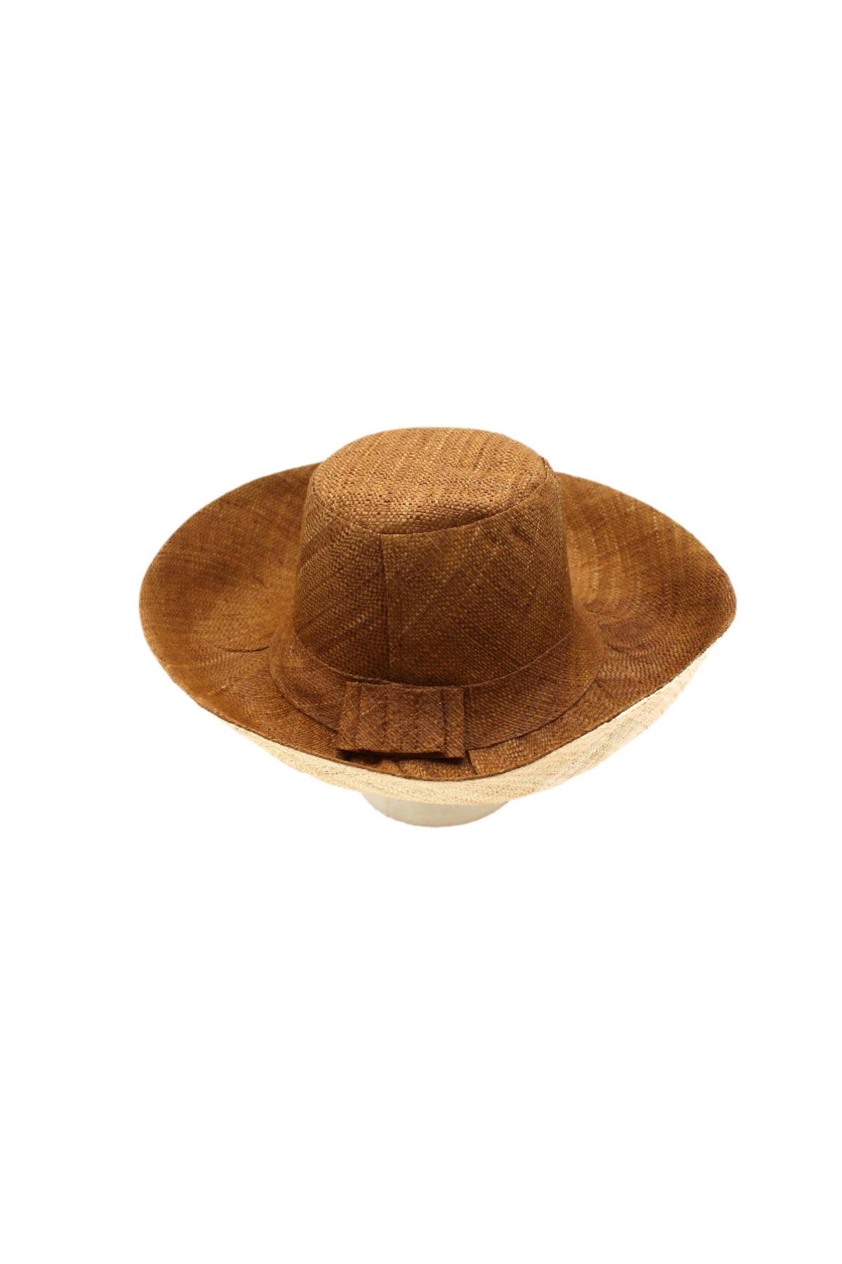 Hues of hand dyed natural raffia palm fibers are hand-woven together to form a supple texture, featuring a distinct two-toned color block pattern in these stylish sun hats. Select a either a 5" moderate or 7" large brim. Bell shaped malleable brim is easily shaped many ways to suit your personal style.