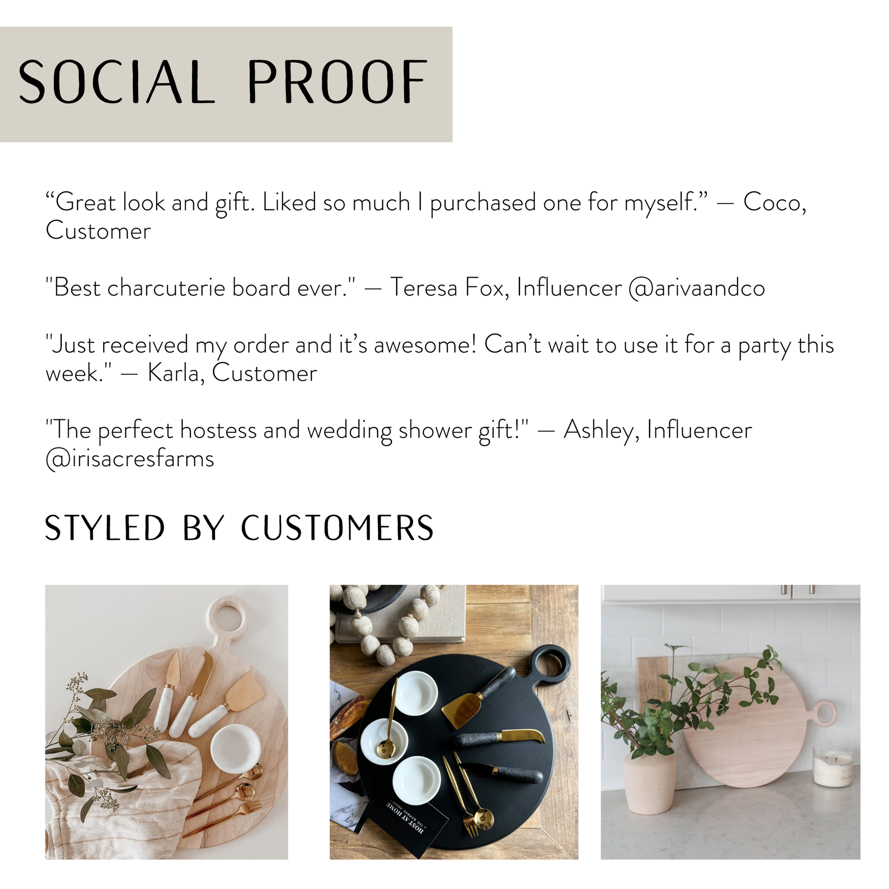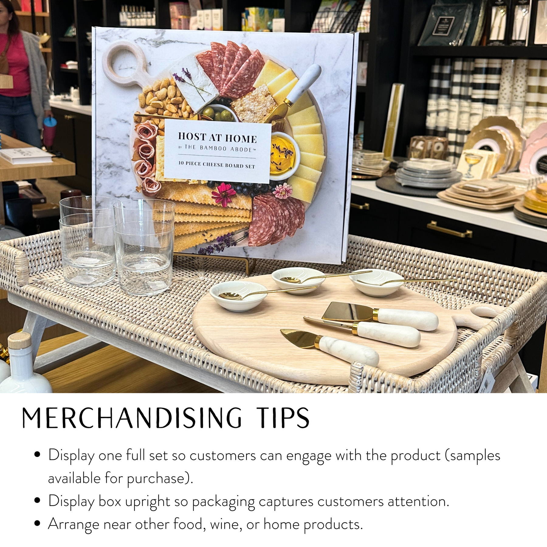Charcuterie boards and cheese knives are traditionally sold separately. When packaged together, they often don't include dipping bowls and serving utensils and prioritize function over form. Our 10 Piece Charcuterie Board Set was designed to solve this problem. Get an expertly-curated, cohesive look. Delivered in chic packaging, this cheese board set will look great on shelves in both gift shops and kitchen stores.