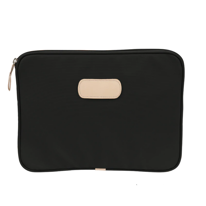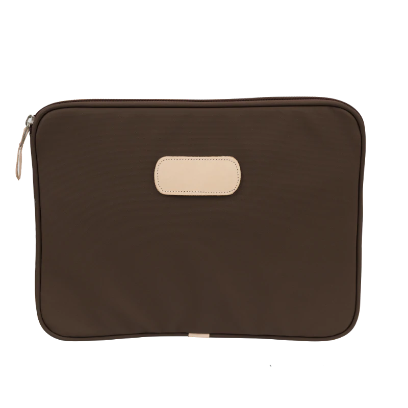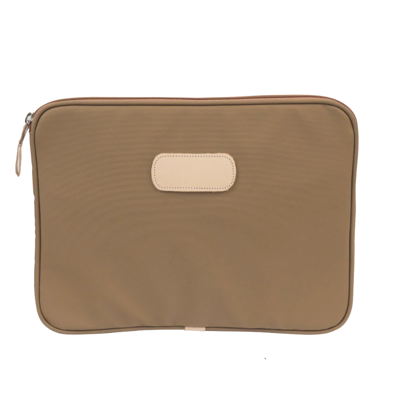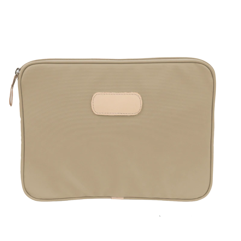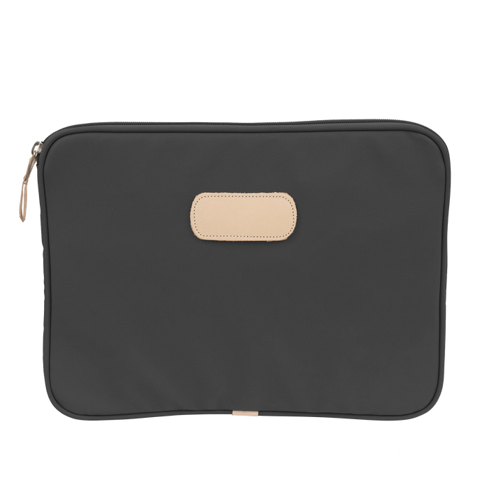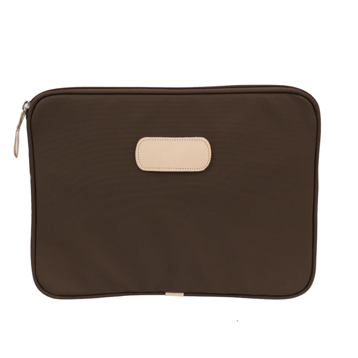 This 15" padded computer case is made of coated canvas with natural leather details. In order to pick the right size for your laptop, measure the actual horizontal and vertical length of your computer which is often very different than the advertised laptop size (which is based on a diagonal screen measurement). Is your laptop 15" or less across? If so, this is likely the size you need.
