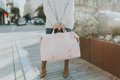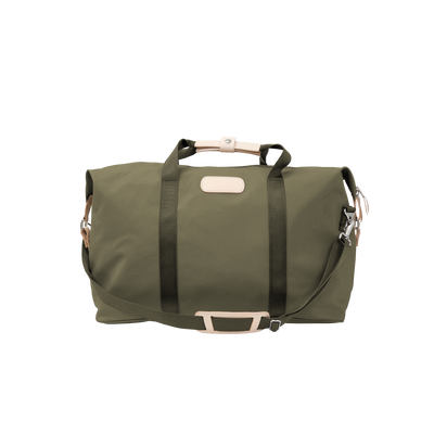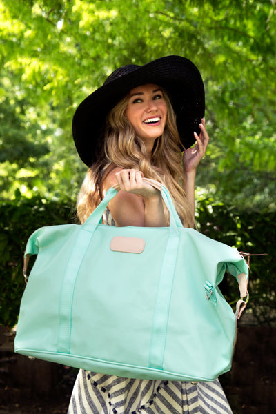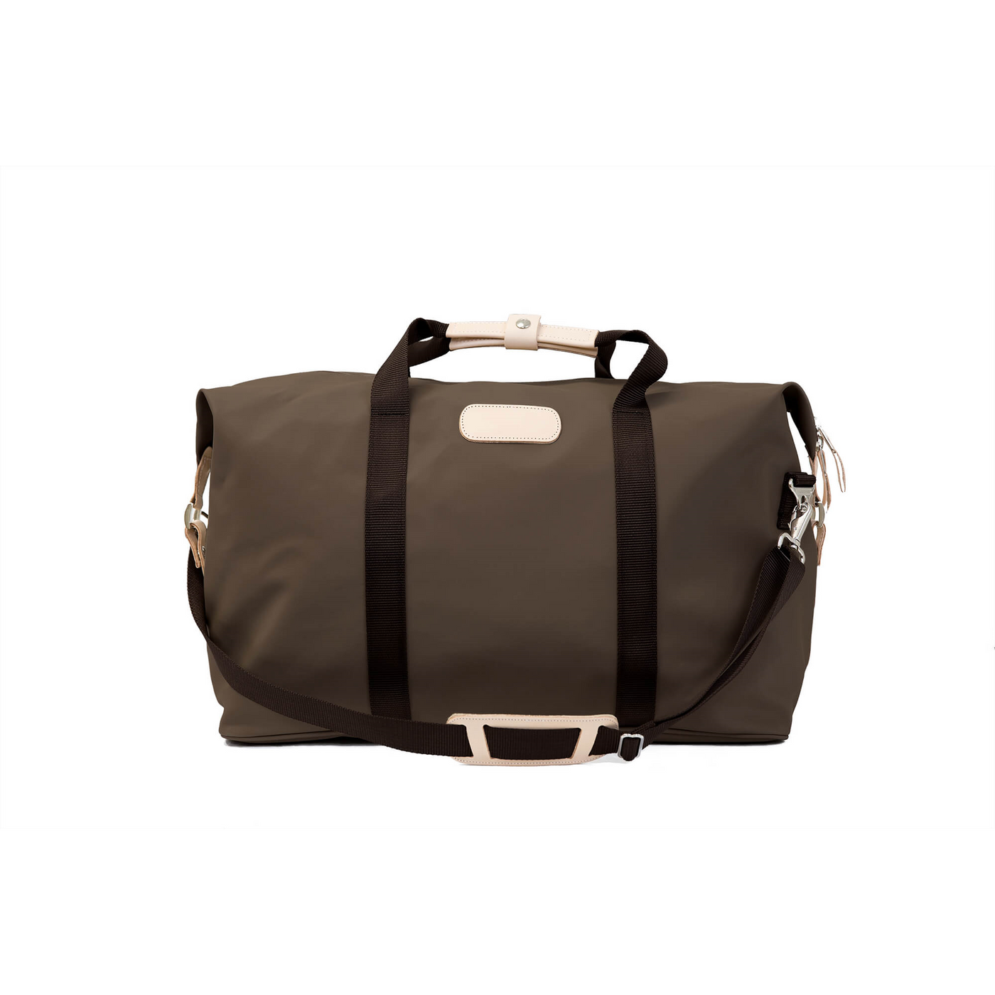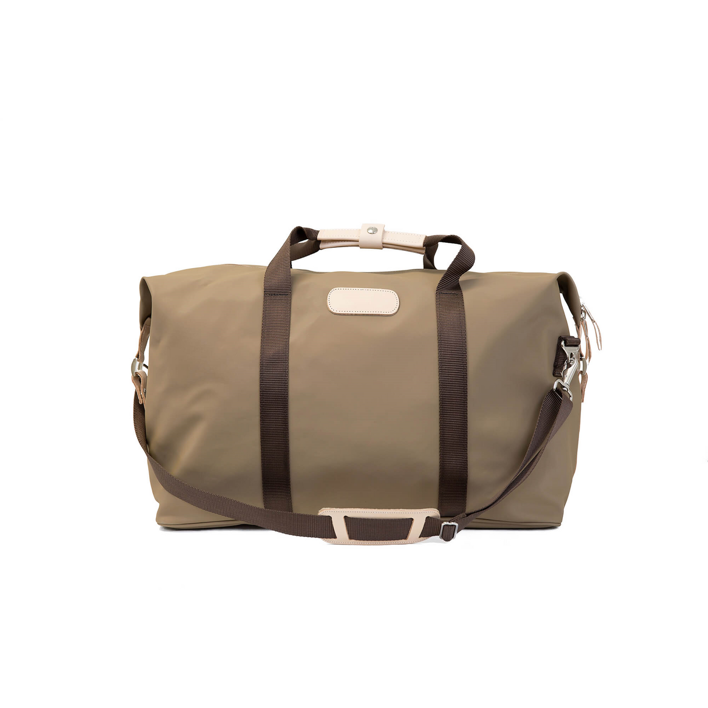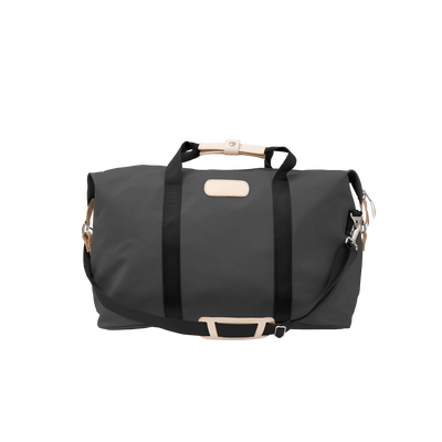 Our Weekender bag is perfect for short weekend trips. The Weekender features interior open pockets and a small exterior zippered pocket. Versatile snaps on the side allow your Weekender to be longer and narrower or shorter and wider. Comes with detachable shoulder strap and leather handles.