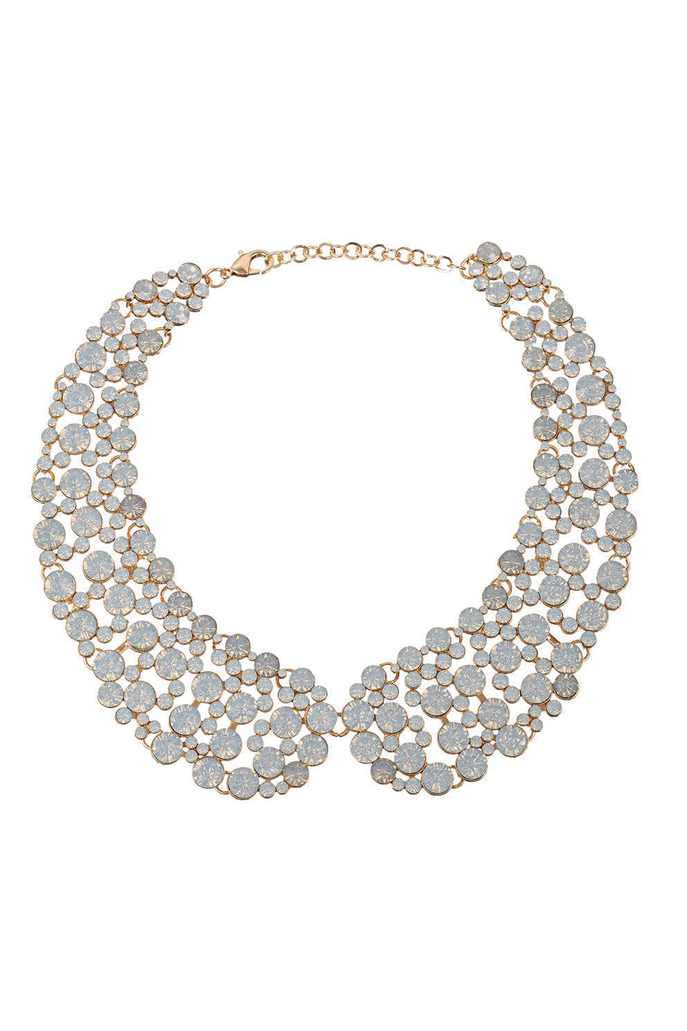 Enhance your style with the Diana AB White Pearl Collar Necklace. This elegant necklace features a shiny AB stone that catches and reflects light, adding a touch of sparkle to your look. The collar design adds a sophisticated touch to any outfit. Elevate your wardrobe with this timeless piece. Product Details: * Metal: Zinc Alloy * Stone Type: Glass Crystal * Size: 12" Drop * Clasp: Lobster