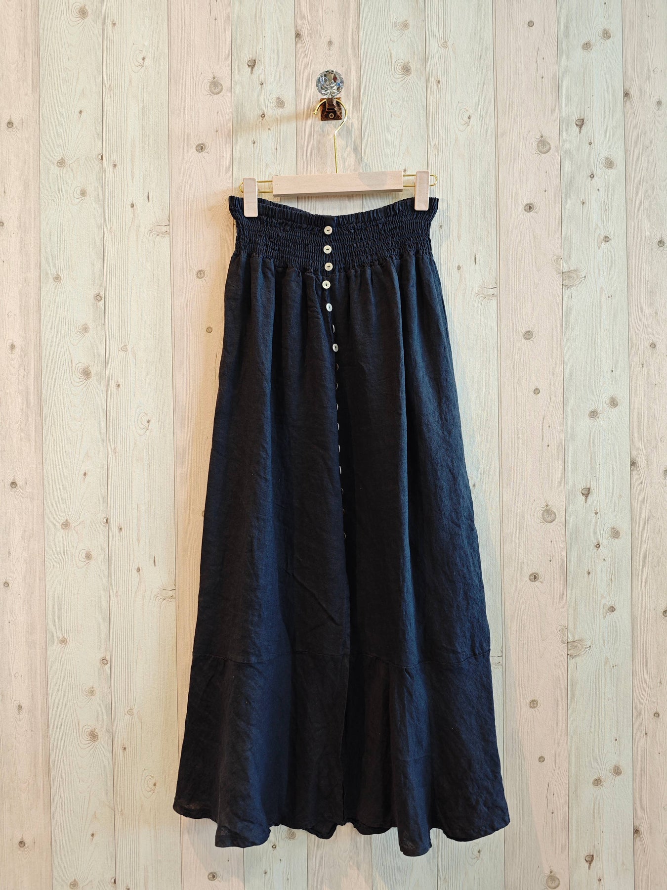 *Skirt with wide elastic waist and buttons *Composition 100% linen, *Measures 100 cm long and 45 cm wide. Approximately