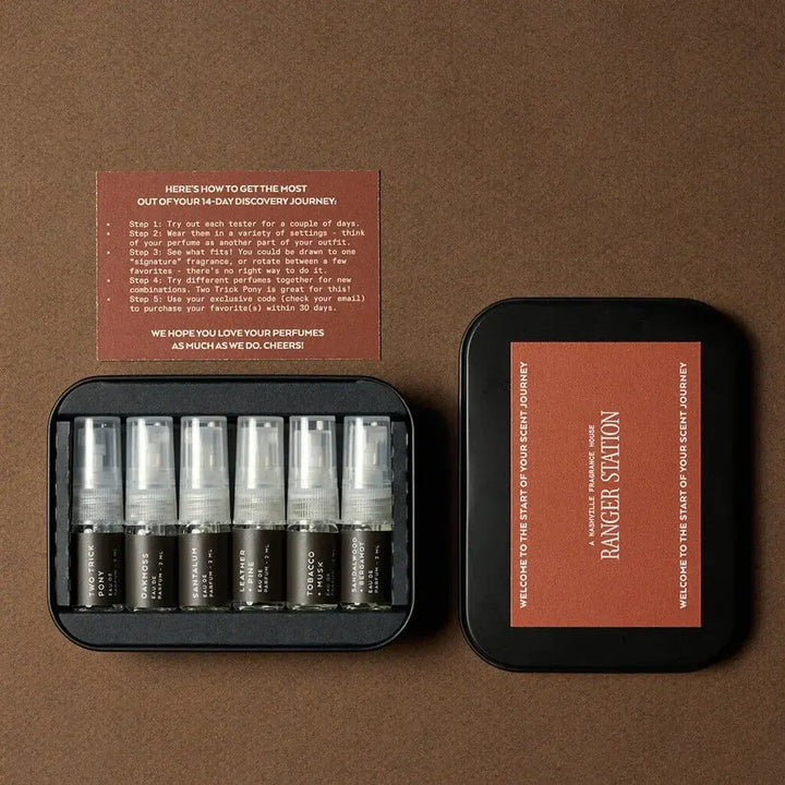 Go on the ultimate Ranger Station scent journey with our best-selling Perfume Discovery Set. These little guys are perfect for travel, on-the-go, and testing which one is for you.