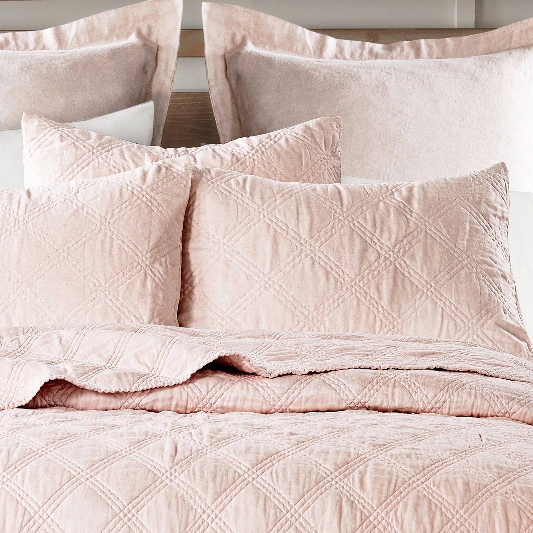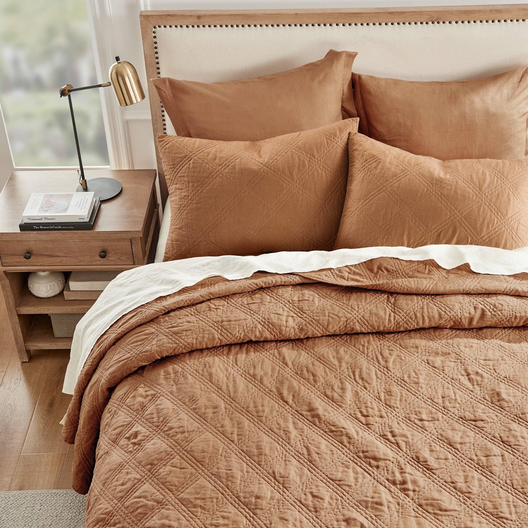 Standard Sham: 20x26 in. King Sham: 20x36 in. The 100% Linen Front/100% Cotton Back Standard Quilted Sham with European styling and comes in many colors. This design will immediately transform your bedroom. Made with the softest linen, this sham is pre-washed to give it a lived-in look. Breathable and cool to the touch, linen has long been valued as one of the most luxurious fabrics to sleep in. Among its many properties, linen is naturally temperature regulating. The sham is machine washable. Enjoy for years to come!